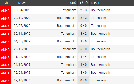 Trong 10 trận đối đầu gần đây giữa hai CLB trong các mùa giải cho thấy Gà Trống áp đảo hơn hẳn khi có đến 6 trận thắng và có 2 trận hòa. Cho thấy được phong độ mạnh hơn Bournemouth một cách rõ ràng. Tuy phong độ của Tottenham vẫn còn nhiều nghi vấn trong các trận đấu vừa qua, chưa hẳn là quá xuất sắc để có thể ngang sức đối với các ông lớn. Tuy vậy, đối với đối thủ lần này thì họ cũng cần hết sức cẩn trọng đẻ có thể thi đấu tốt hơn và không để sai lầm xảy ra.
